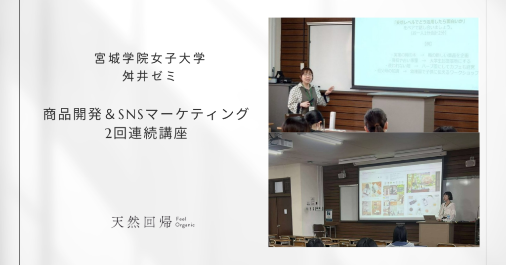 昨年からご一緒させていただいている、宮城学院女子大学舛井ゼミの商品開発プロジェクトの一環で、「商品開発」と「SNSマーケティング」の2回講座をグリーディーで担当させていただきました。