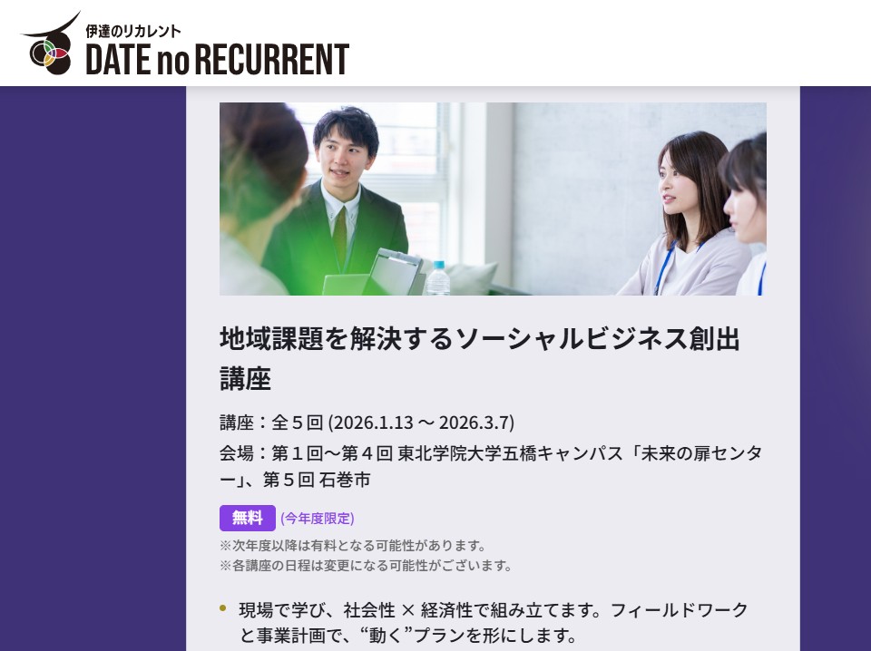 「県新事業創造リカレント教育プラットフォーム(伊達のリカレント)」 がスタートします。